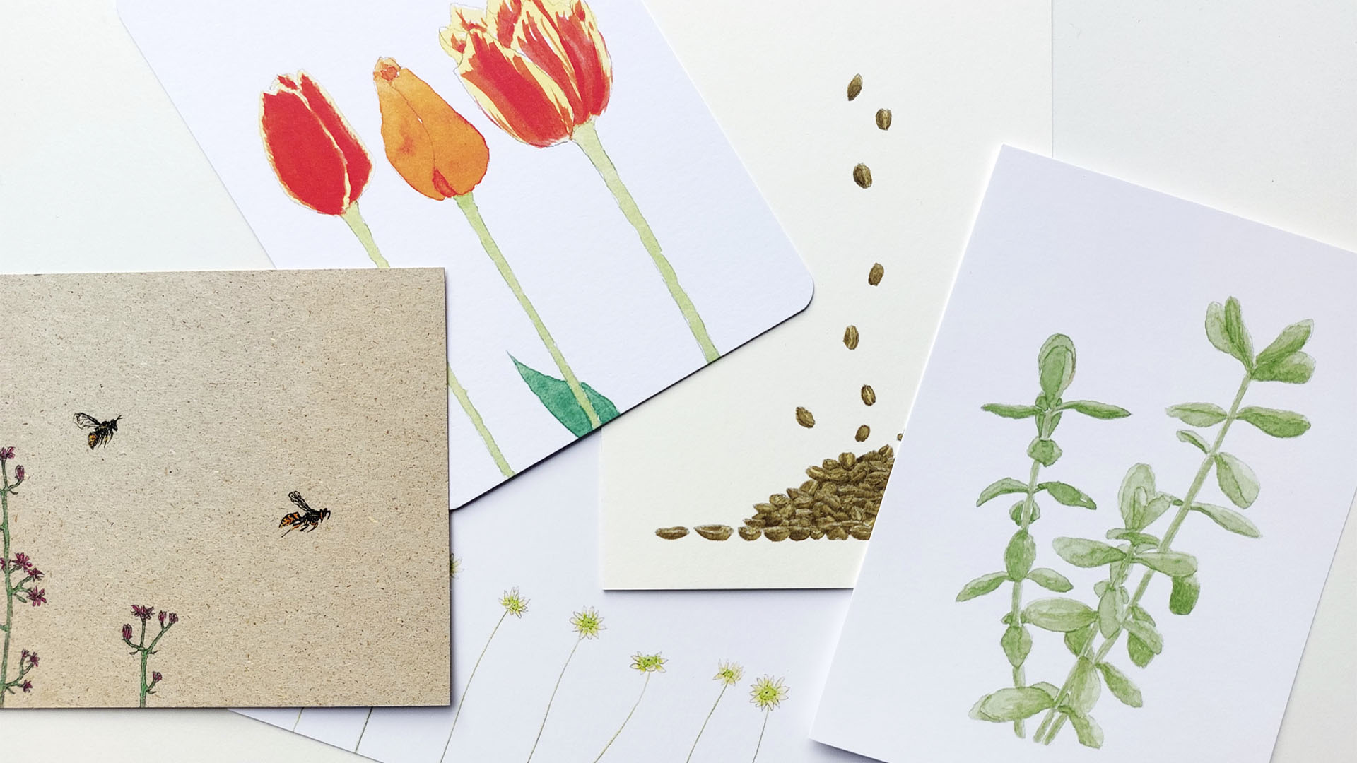 Schöne, stilvolle Karten aus hochwertigen Papieren – kreativ gestaltet und umweltfreundlich gedruckt! Jede Karte zeigt handgezeichnete Illustrationen oder manuelle Linoldrucke und Monotypien, die teilweise koloriert wurden. Gelegentlich ist auch die eine oder andere Collage zu finden. Verschiedene Zeichen- und Maltechniken,…